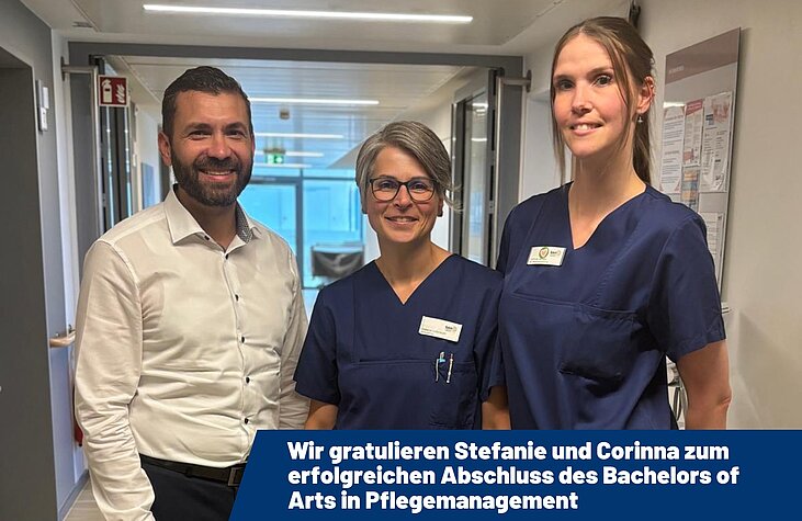 Unsere Kolleginnen aus der Pflege haben erfolgreich ihren Bachelor of Arts in Pflegemanagement abgeschlossen – eine großartige Leistung, zu der wir ganz herzlich gratulieren Das zeigt: Karriere in der Pflege kennt viele Wege – von Fort-, über Weiterbildung bis zum Studium.
