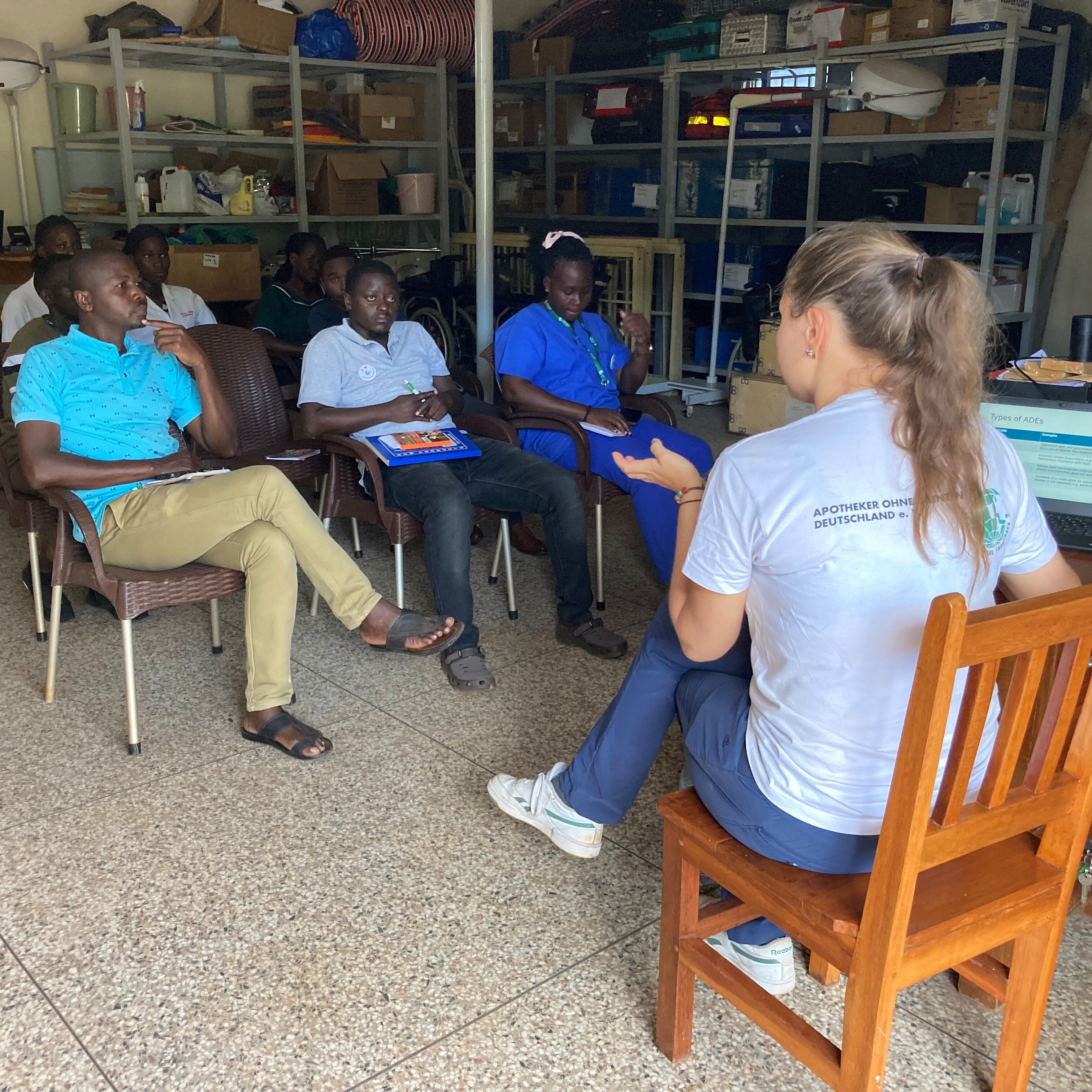 Seit 2022 reist unsere Apothekerin Julia Heuck regelmäßig nach Uganda, um die lokale Gesundheitsversorgung vor Ort zu unterstützen und nachhaltige Strukturen aufzubauen. Bislang war sie dabei mit Interplast Germany im Einsatz – in diesem Jahr begleitete sie erstmals die Organisation Apotheker ohne Grenzen Deutschland e.V.. Durch ihr Engagement trägt sie dazu bei, die pharmazeutische Betreuung in der Region weiter zu verbessern und den Zugang zu wichtigen Medikamenten langfristig zu sichern.