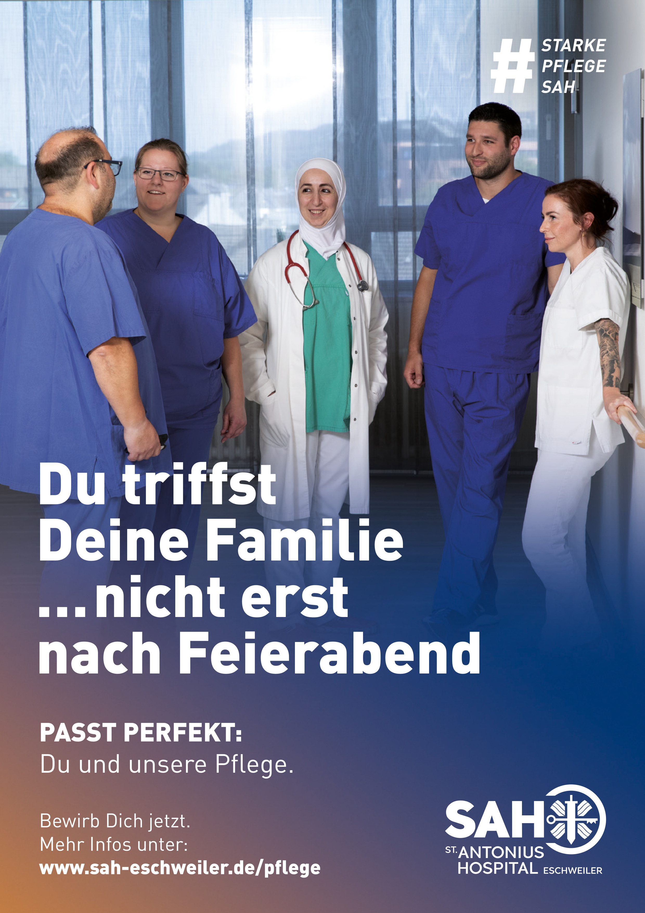Nach einer Operation, bei der Vor- und Nachsorge, aber auch in ambulanten Bereichen arbeiten die Pflegekräfte des St.-Antonius-Hospitals eng mit anderen Berufsgruppen zusammen. Wir orientieren uns dabei stets an den persönlichen Bedürfnissen unserer Patienten. Wenn keine vollständige Heilung möglich ist, kann die Pflege zumindest dazu beitragen, die Lebensqualität aufrecht zu erhalten und durch geeignete Nachsorge-Angebote dabei helfen, dem Patienten das Leben mit der Krankheit zu erleichtern.