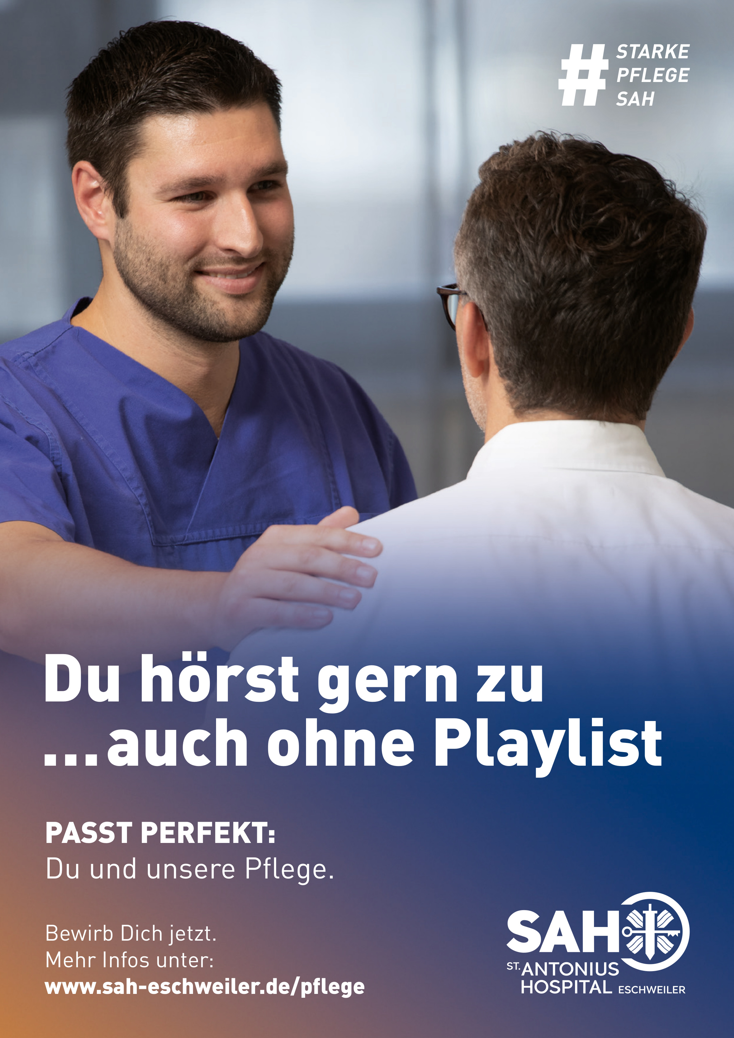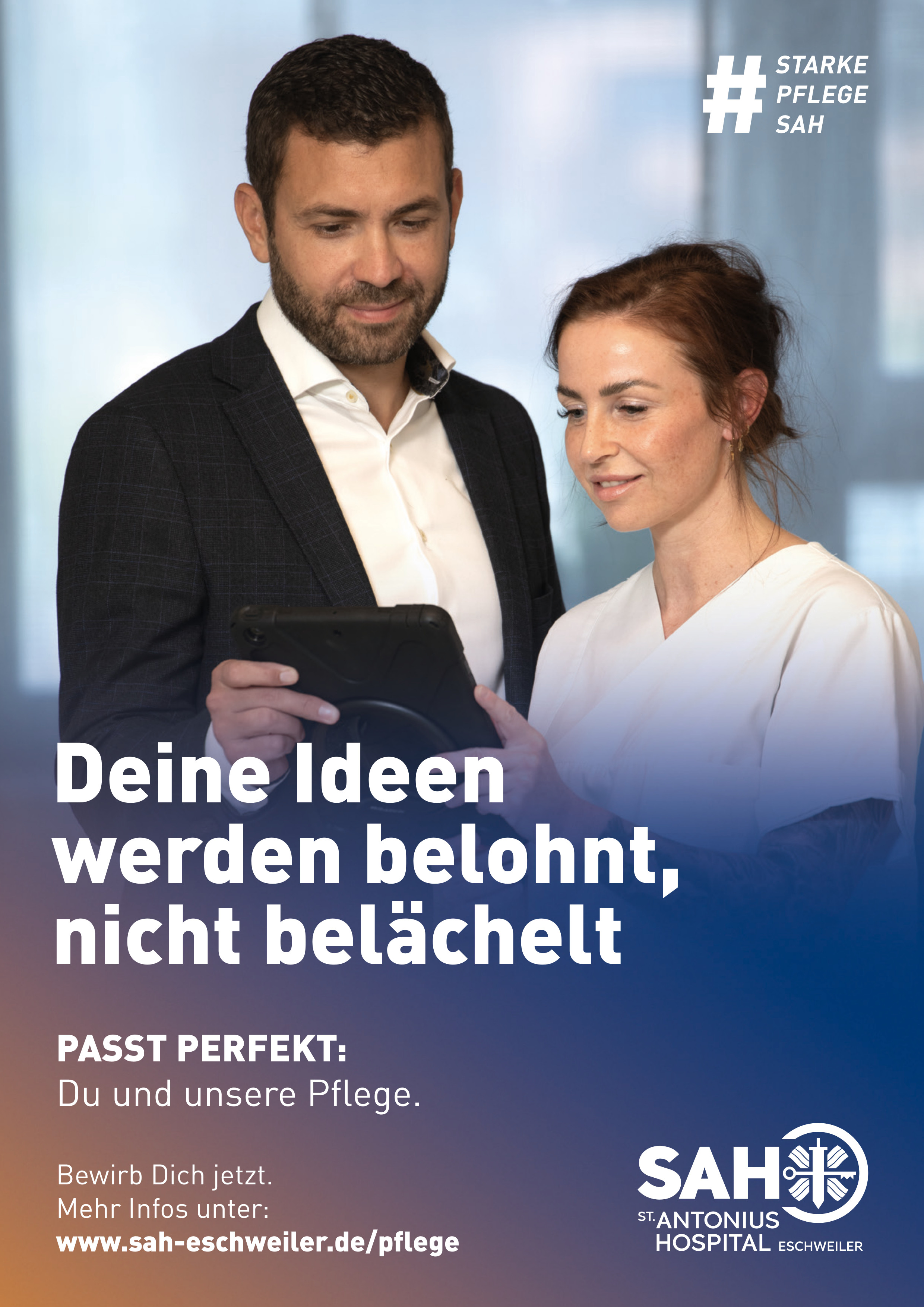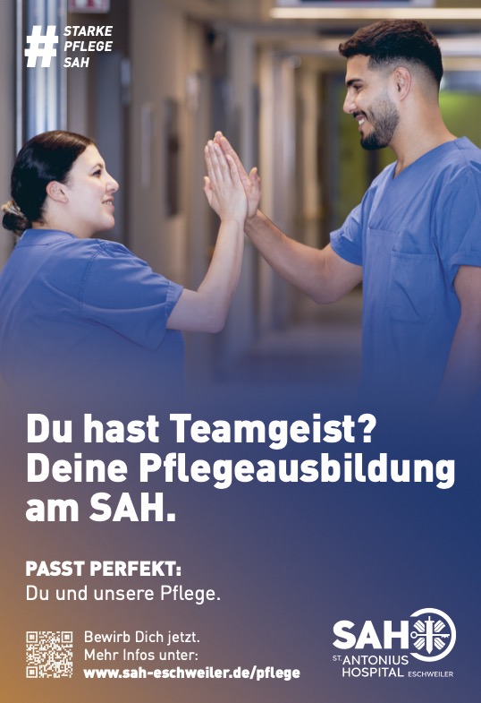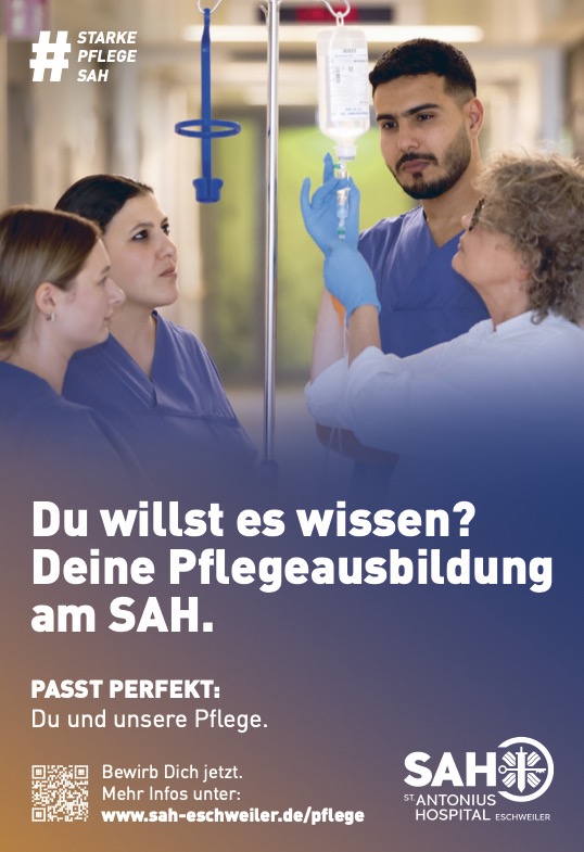 Im St.-Antonius-Hospital arbeiten Pflegekräfte mit besonderer Spezialisierung, u. a. in der Onkologischen Fachpflege, der Intensivpflege, im Stoma- und Wundmangement, wie auch im Bereich Bobath und Kinästhetics.