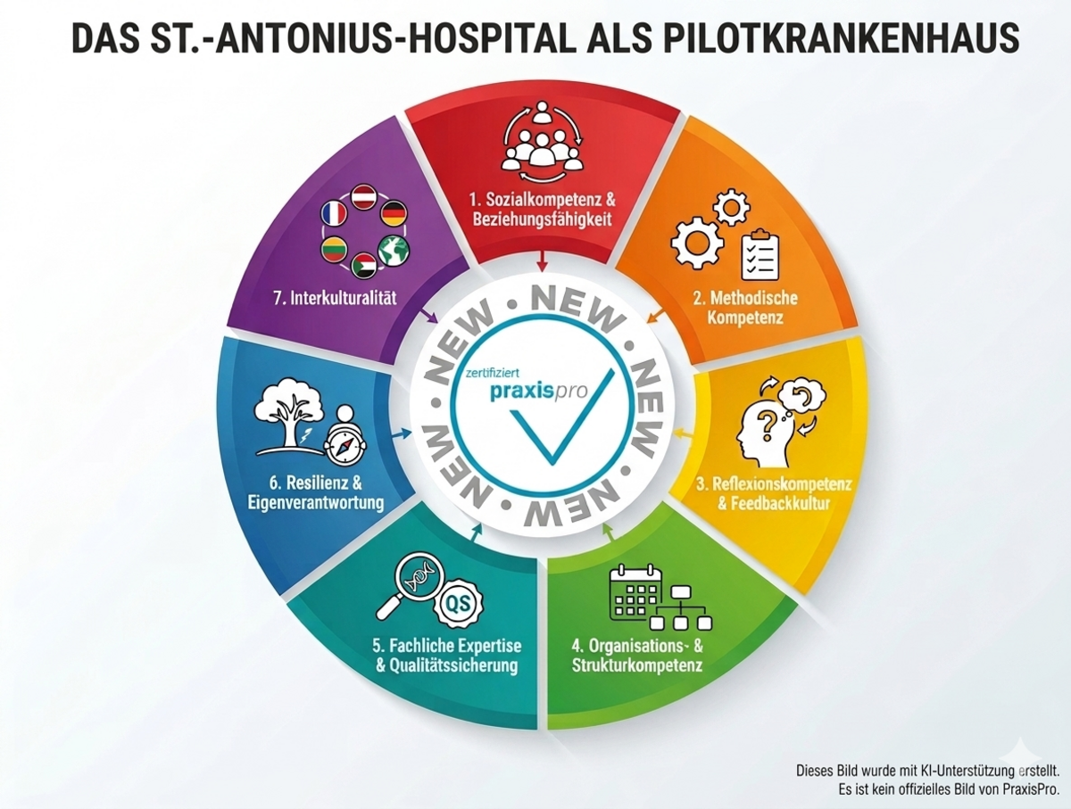 Das St.-Antonius-Hospital Eschweiler beteiligt sich als Pilotkrankenhaus am Zertifizierungsprogramm PraxisPro. Damit setzen wir ein klares Zeichen für eine strukturierte, qualitativ hochwertige und zukunftsorientierte Pflegeausbildung.