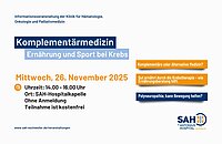 Das Eschweiler Hospital lädt herzlich ein zur Infoveranstaltung Komplementärmedizin, Ernährung und Sport bei Krebs der Klinik für Hämatologie, Onkologie und Palliativmedizin am